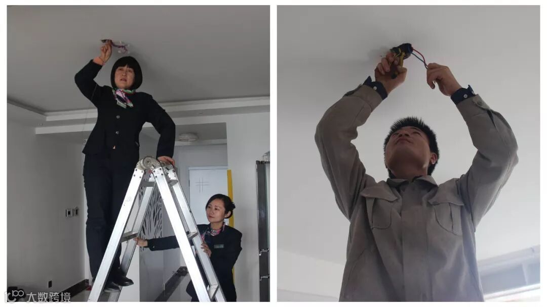 ▲孙媛媛、李志伟、李谭共同配合,为业主恢复烟感器