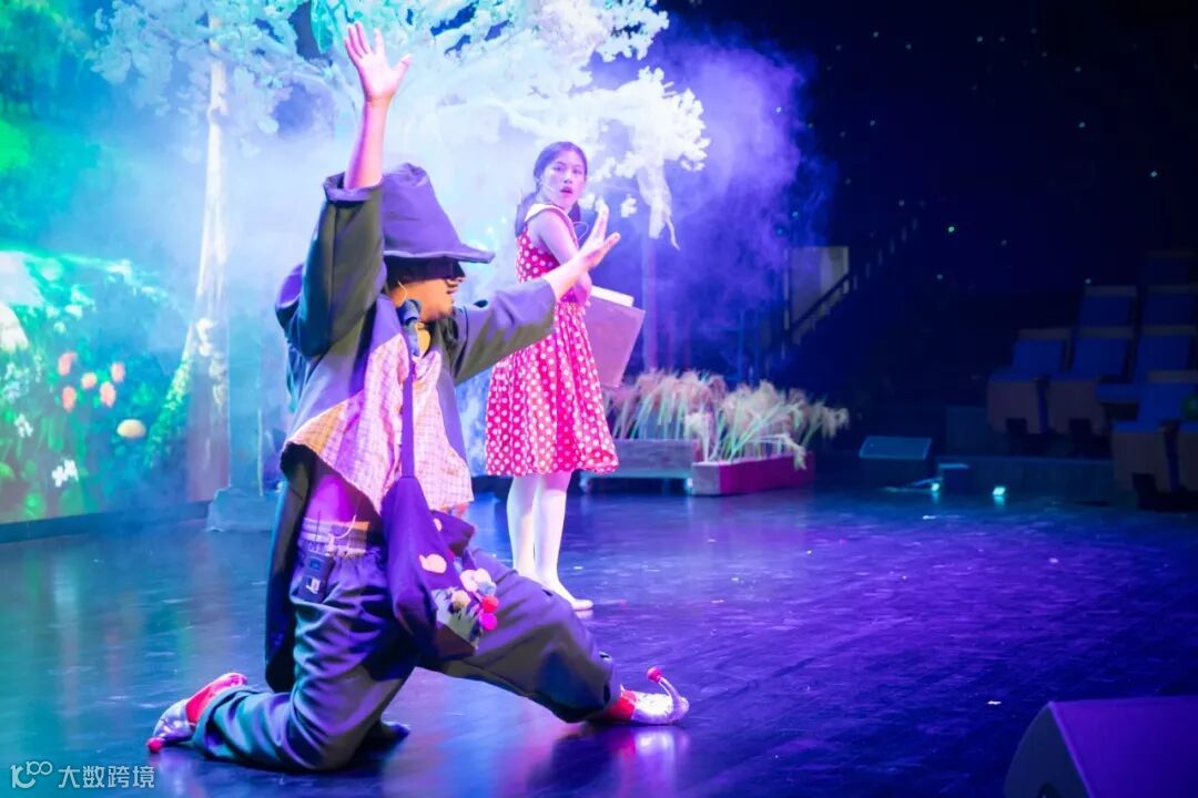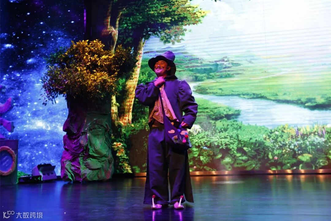 灯光渐暗,舞台亮起,幕布缓缓拉开,那些在童话故事中出现过的角色,稻草人、铁皮人、狮子、女巫纷纷出场,和孩子们打招呼时,小朋友们的童话世界和现实世界有了奇妙碰撞……