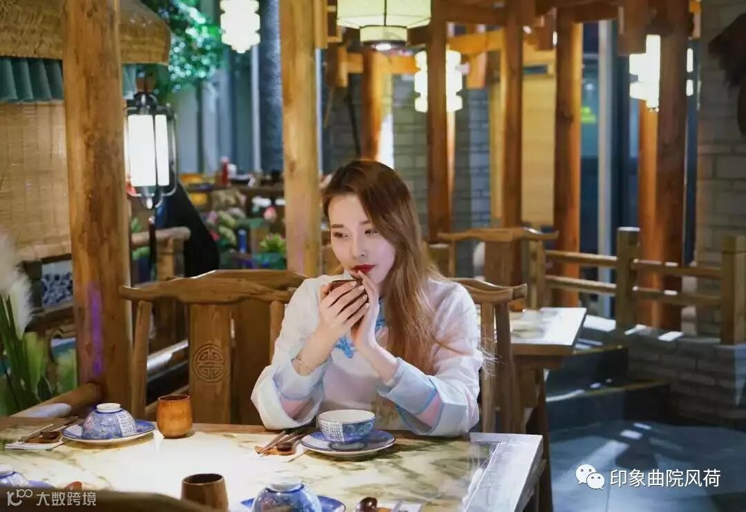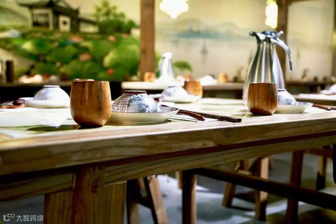 在船舫一旁,是明档厨房,小二和丫头们忙碌其间,颇有旧时风韵。所用的定制餐具极为讲究,瓷木组合,质感很高级。