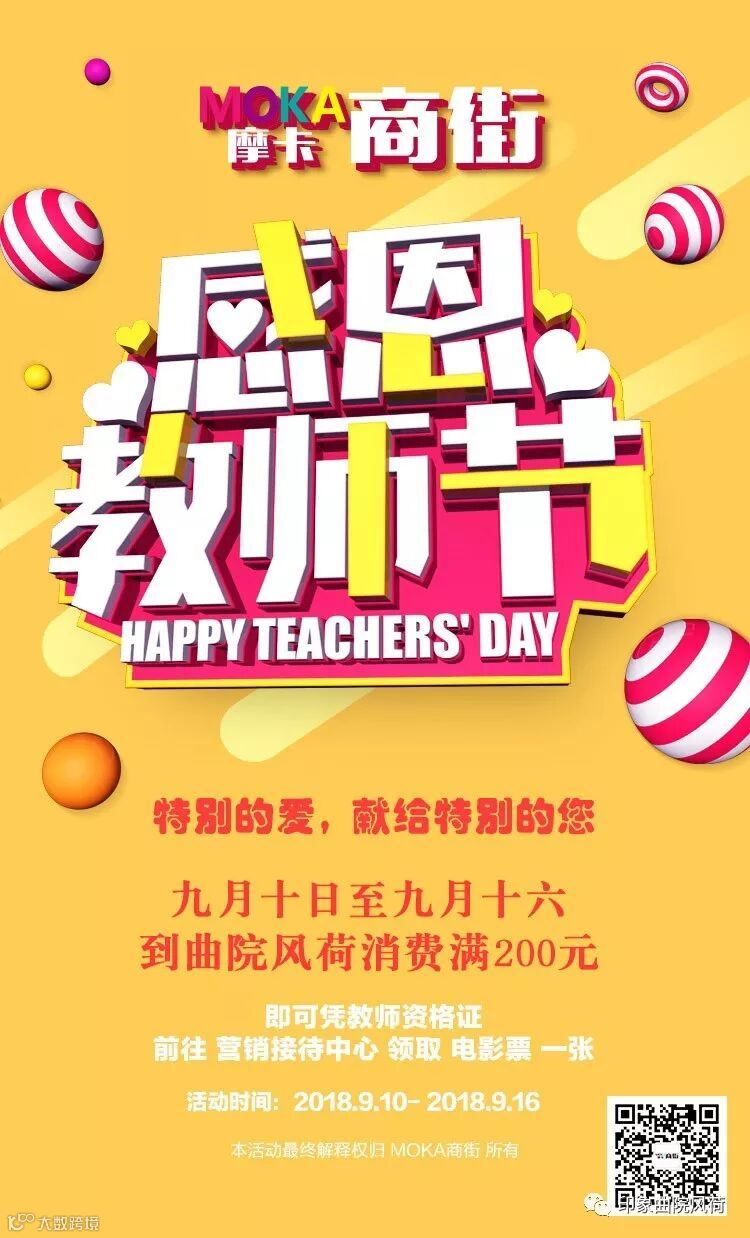 消费满200元凭小票和教师资格证即可到安泰国际广场营销接待中心领取电影票一张!