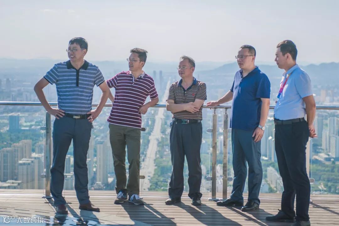 史志伟一行乘坐6米/秒的高速电梯到206米写字楼顶层参观无边泳池——“洗星池”,并远眺大海,俯瞰城市。