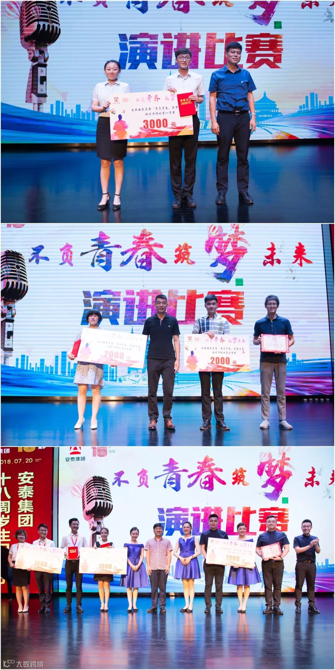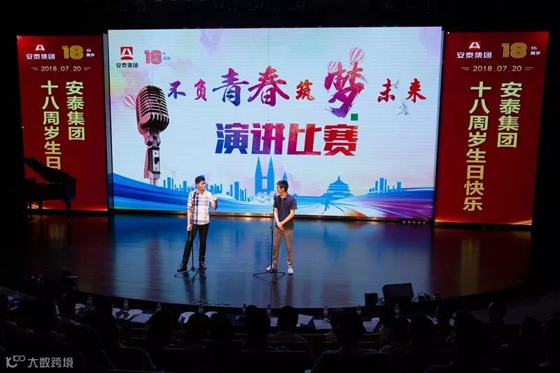 下午4:00,“不负青春 筑梦未来”演讲比赛在安泰国际广场小宇宙剧场举行,集团董事长别程远、总经理别振远、集团高管、工龄10年以上员工、各职能部门、分子公司中层以上管理人员及员工代表300余人观看了演出。