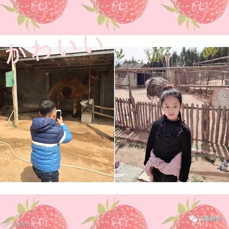 一进小动物村就听到宝宝们的惊叹,哇,这是什么啊,妈妈这是小兔子吗?爸爸,这是鸵鸟哎,爷爷,这有个大骆驼,奶奶,这个孔雀是真的吗?