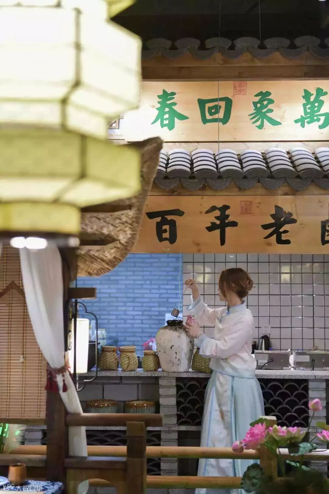 从最开始的设计构思到现在完美的西湖盛景,老板都是亲力亲为,为食客精心打造了一处“食与赏”的艺术空间。但这些都只是开始,再往里走,就是“十里风荷”了。