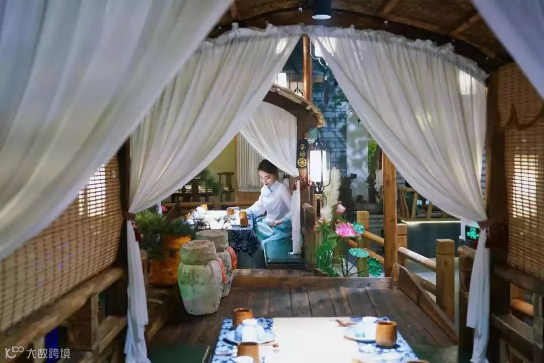在船舫一旁,是明档厨房,小二和丫头们忙碌其间,颇有旧时风韵。所用的定制餐具极为讲究,瓷木组合,质感很高级。