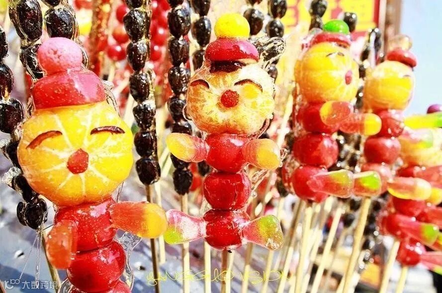 传统美食类:爆米花、冰糖葫芦、糖炒栗子、棉花糖等