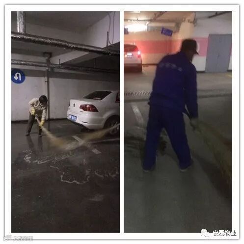 8、小区车库是业主停放及出入车辆的地点,进进出出地面总会有灰尘不断,为了能使空气清新,免受灰尘的污染,祥和园、未来城、星河港湾、水晶城等小区定期对车库进行冲刷工作。