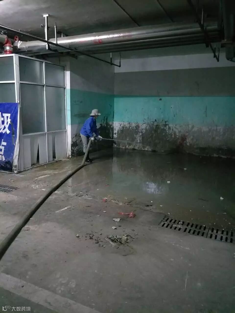 11、水晶城保洁冲刷建筑垃圾临时堆放处。