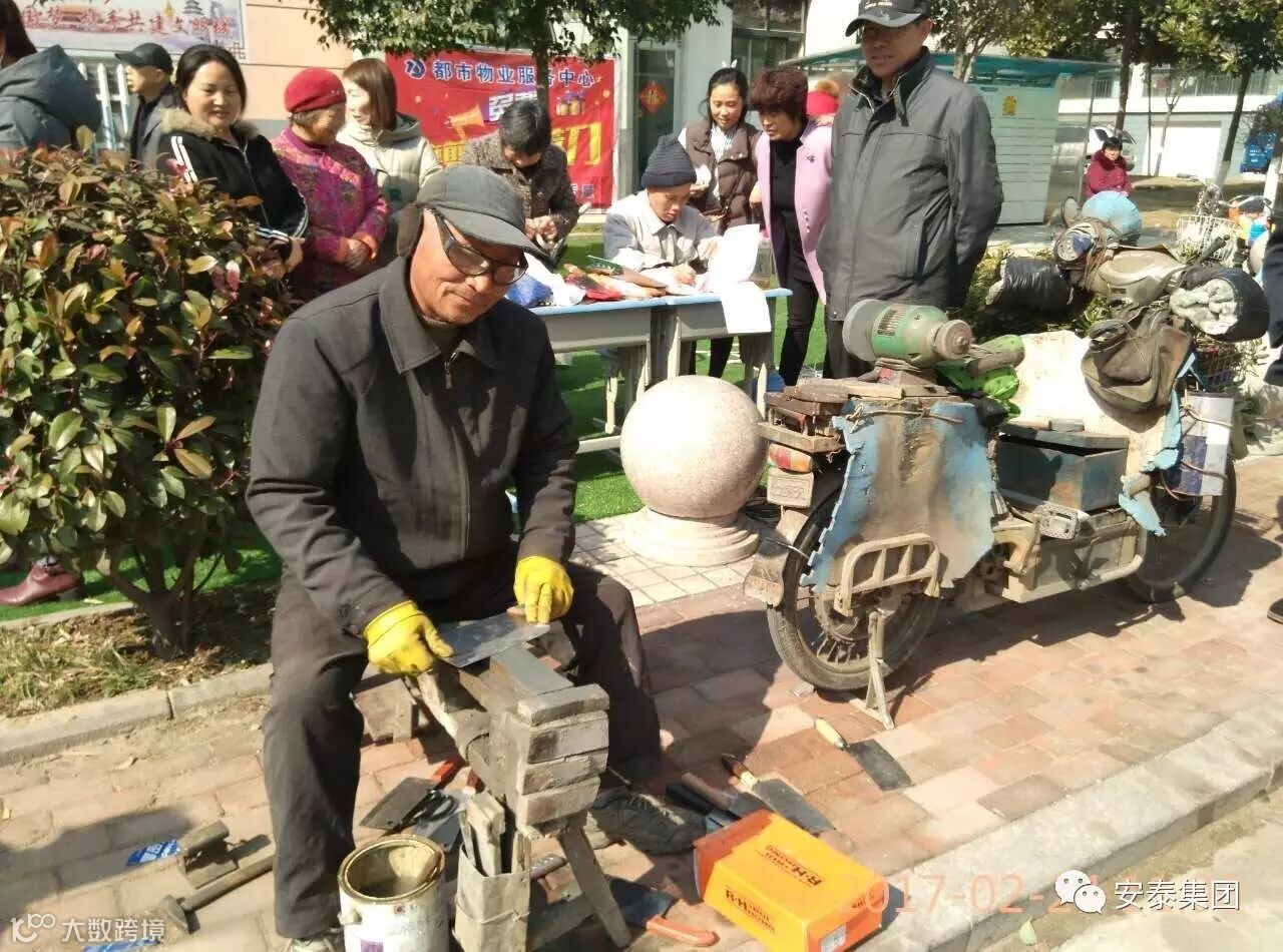 活动第一站来到安泰易居,2月24日一大早,物管处的工作人员早早的贴好横幅、摆好桌子,为本次活动做好了充分的准备工作。活动期间业主们带来自家钝了的剪子和菜刀,排队登记,笑容满面的参与到“磨剪子、戗菜刀”活动中。该活动深得业主之心,业主们表示“磨剪子、戗菜刀”活动切实方便了生活,解决了一些长期以来解决不了的生活小问题。