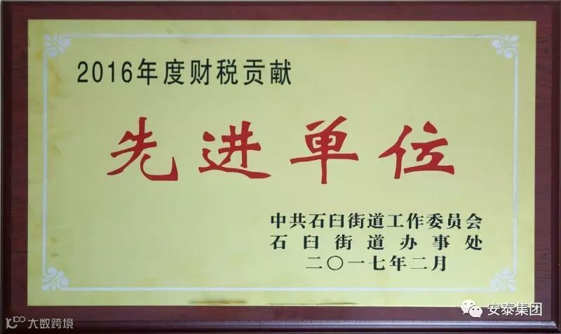 2月7日,日照安泰集团同时荣获石臼街道“2016年度财税贡献先进单位”,秦楼街道“2016年度财税贡献奖企业”和“现代服务业发展平台建设先进单位”。