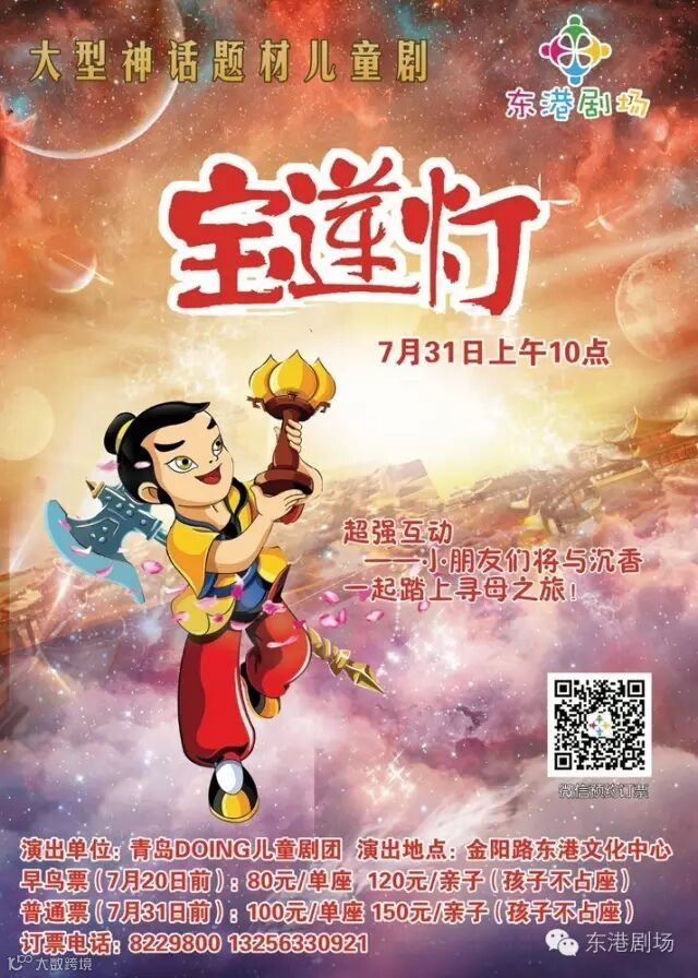 《宝莲灯》终于要跟大家见面了。小朋友好奇神话中的沉香,二郎神、哮天犬都是怎样的吗?沉香学会了哪些本领呢?又是怎样救出妈妈?7月31日东港剧场《宝莲灯》里一起寻找答案吧!!