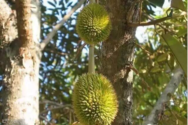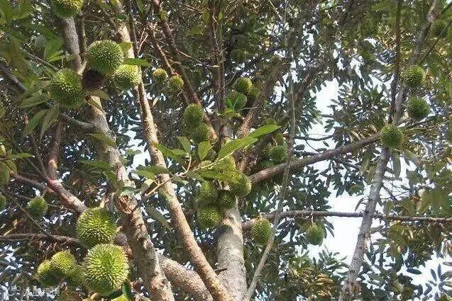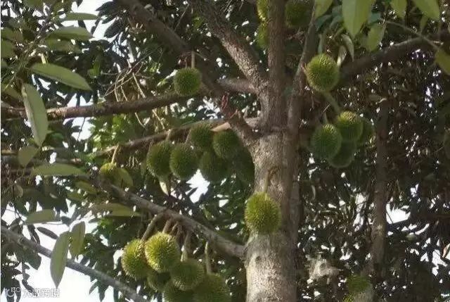 榴梿原产马来西亚,现在产量最高的是泰国、马来西亚和印尼。大部分榴梿树有20多米高。也有少数树干低矮。榴梿树可生长五六十年,与一般热带水果生长期短的特点不同,它生长15年后才开始结果。每年结果一次或两次,果实长到3个月时进入成熟期。直接上图,一起来看看榴莲神奇的生长全过程吧