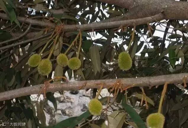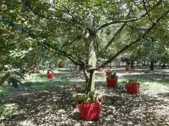 听果农说,榴梿不能采摘,只能等其成熟自动落下,否则果树会受到损伤~