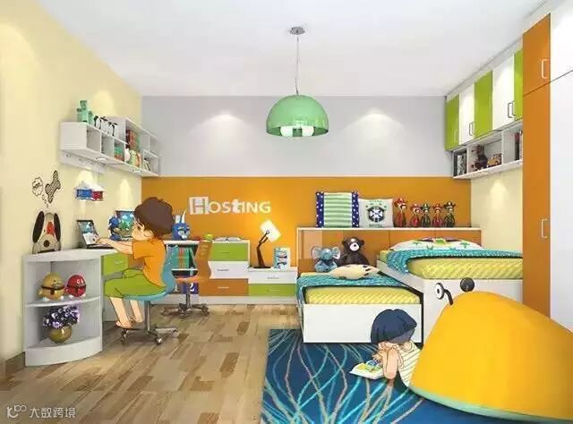 双人书桌、子母床,空间的高效利用让孩子还能在房间搭个帐篷去冒险。