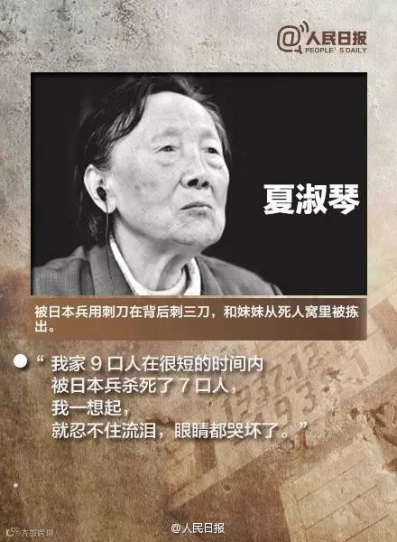在那场惨绝人寰的屠杀中活下来的他们,每个人都背负着血与泪的记忆。如今,他们大多老去,甚至离世,还剩下百余人。他们,带着对暴行的痛苦记忆,每一个人都是铁证!今天,是南京大屠杀死难者国家公祭日。见证者正在凋零,但真相永远不应沉没!