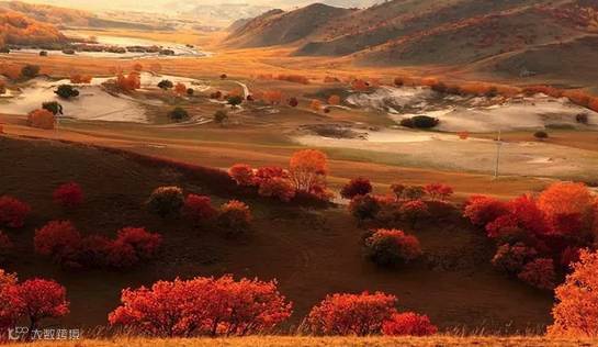 这里地貌独特,秋天景色绚丽多彩,漫山遍野的红叶,流金溢丹,簇簇红叶中,明黄的白桦叶融合在一起,汇成一幅幅浑然天成的图画。山坡下,沟膛里,依山就势,散落着几十间茅屋草舍和新盖的红砖瓦房。鸡鸣犬吠,炊烟袅袅,很有一种古朴原始的田园风味。这里是中国摄影发烧友的倾慕之地!