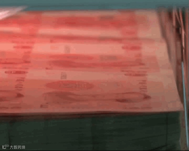 新版100元人民币很多防伪技术都是在印刷中完成的。例如凹印技术是人民币印刷特有的,油墨填充进去印到纸上时,图案是立体的,伪钞难以仿制。刚出炉的人民币均为大张,大小和一张报纸差不多,随后,工作人员需对齐进行裁切,将其变成独立纸张。