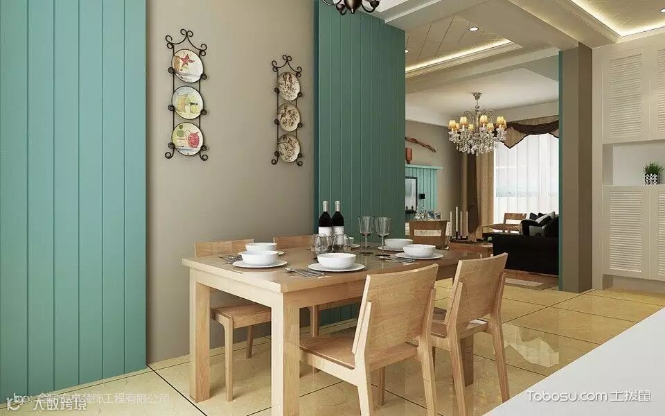 地中海风格餐厅背景墙效果图走的是清新浪漫的路线,蓝天与大树的装饰,清新的湖水蓝搭配工艺盘装饰,蓝色的海洋与鲜艳的花朵装饰,都让人觉得生活是如此的美好,在这样浪漫的氛围中,你是不是会更加有食欲呢?