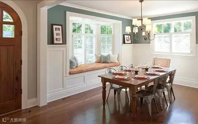 对于大户型而言,飘窗设计水到渠成,广阔的视野更能体现飘窗的设计效果。若想将餐厅入口作为飘窗位置,无疑先得确保家中餐厅拥有良好的景观。
