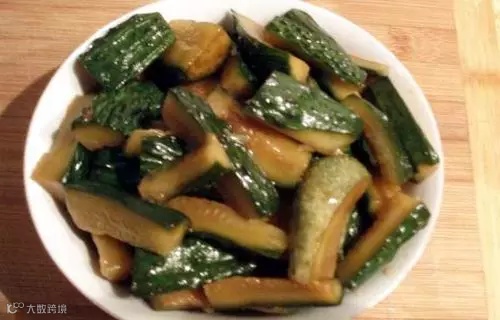 将黄瓜洗净,切开,把籽去掉,晾至半干,然后浸泡在白糖、醋和盐调成的溶液中,密封15天可。