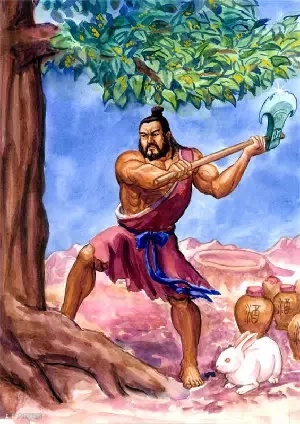 相传在月亮上有一棵高五百丈的月桂树。汉朝时有个叫吴刚的人,醉心于仙道而不专心学习,因此天帝震怒,把他拘留在月宫,令他在月宫伐桂树,并说:“如果你砍倒桂树,就可获仙术。”吴刚便开始伐桂,但吴刚每砍一斧,斧起而树创伤就马上愈合,日复一日,吴刚伐桂的愿望仍未达成,因此吴刚在月亮上常年伐桂,始终砍不倒这棵树,因而后世的人得以见到吴刚在月中无休止砍伐月桂的形象。