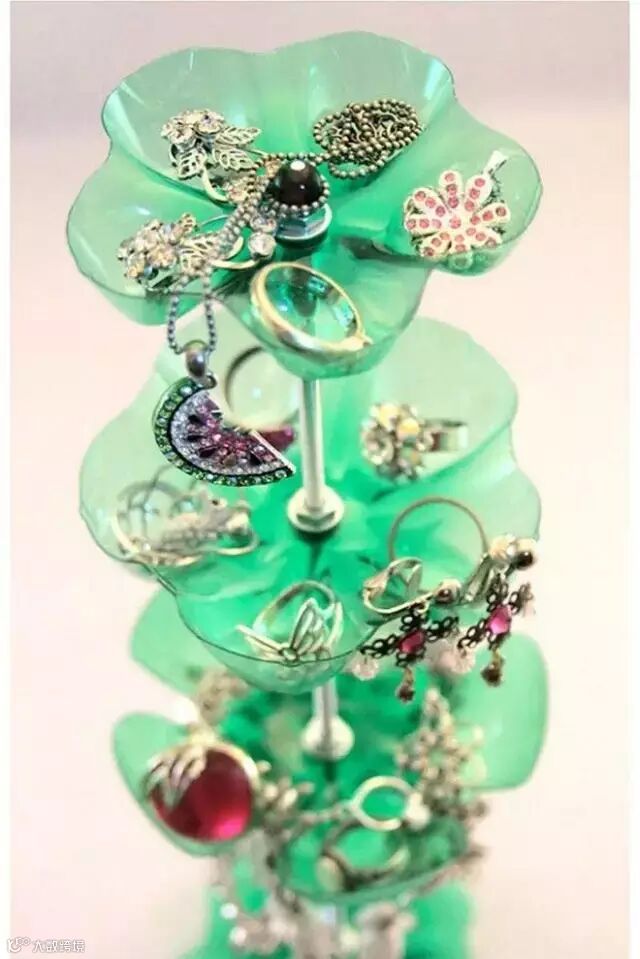 5.用完的饮料瓶改造的饰物架,这可是独一无二的哦!