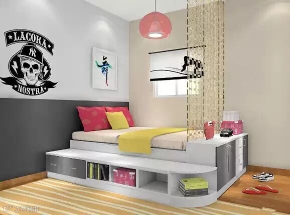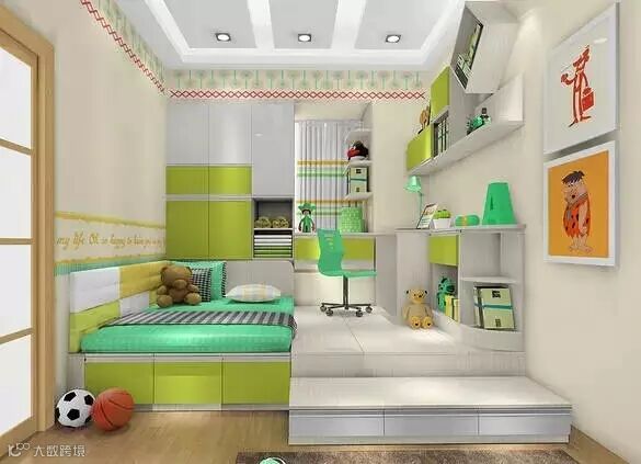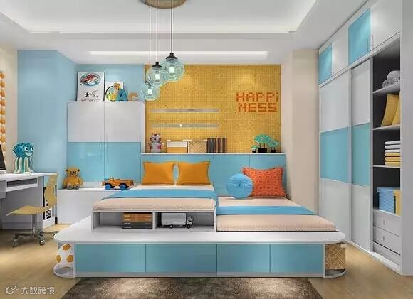 榻榻米的侧边有缓冲的梯柜,可以更好地保护孩子,也可以坐在上面给孩子讲故事哦。