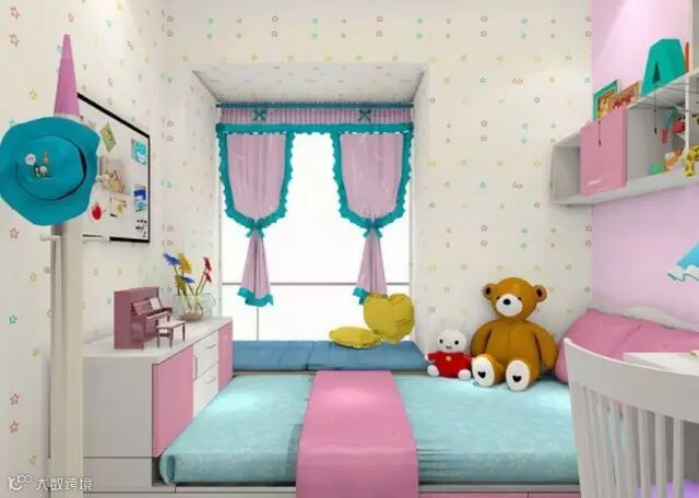 做一面墙的书柜,粉粉主色调,让小公主自在地享受自己的小时光。