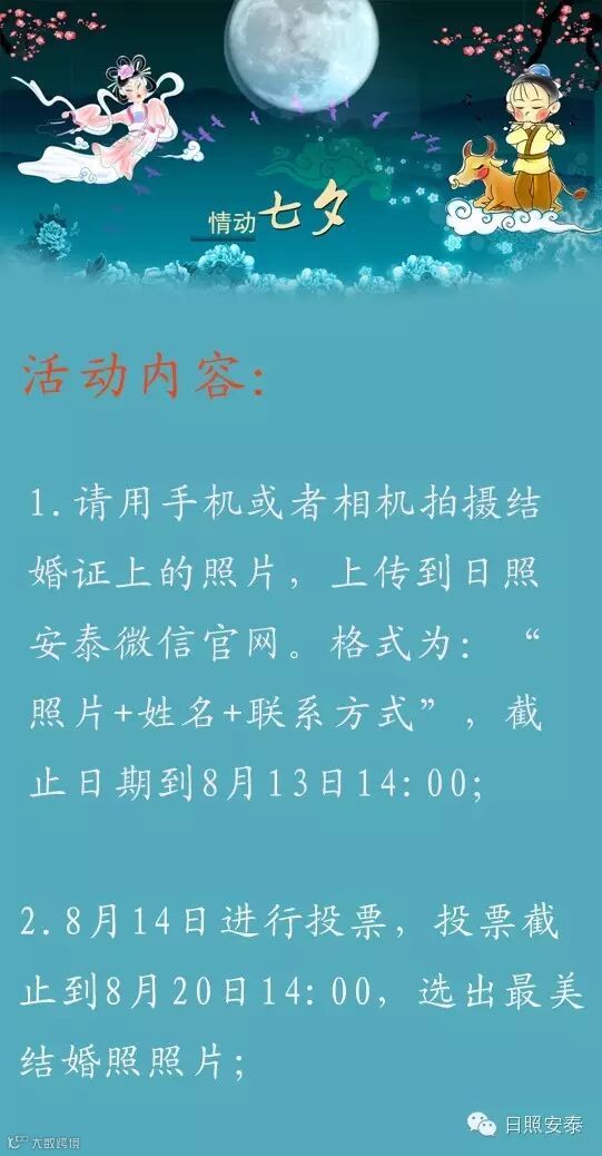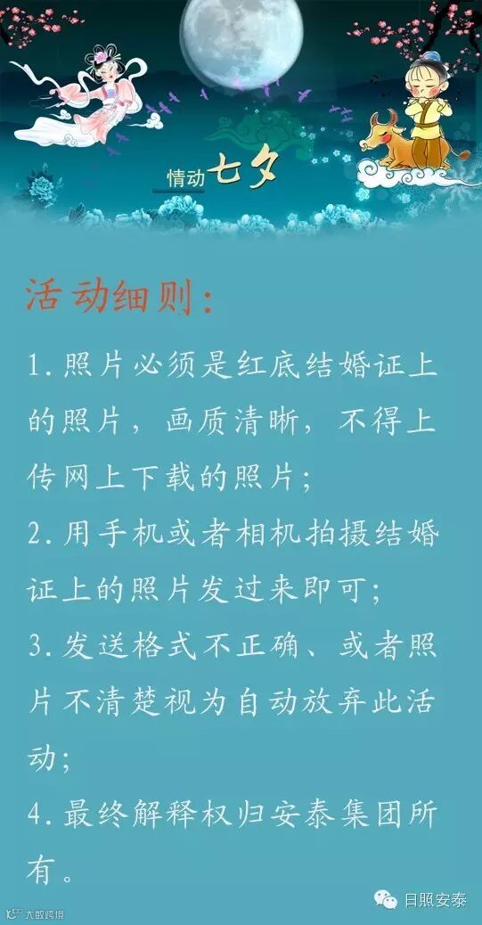 结婚证的出现只有简单的两步:拍红底合照、盖上国家公章。就这样简单的两步流程便决定了两人从此注定不一样的人生,从此你不仅是父母的孩子,还是她(他)得以依靠的终身伴侣,你们将相互扶持共同体验一切的幸福甜蜜也将一起面对所有的艰难险阻。或许你们是结婚不久的甜蜜夫妻,或许是已结婚多年的老夫老妻,回想下是否已经很久没像恋爱时那样与对方一起度过浪漫的情人节了,难道你感受不到她(他)与日俱增的失落吗?何不在浪漫七夕到来之际,炫出你的结婚照,表达出你浓浓的爱意,为她(他)赢得情人节礼物呢?什么!你还木有结婚!没关系,上传父母的结婚证照片也可以。表达爱意要趁早,快快参与进来吧!