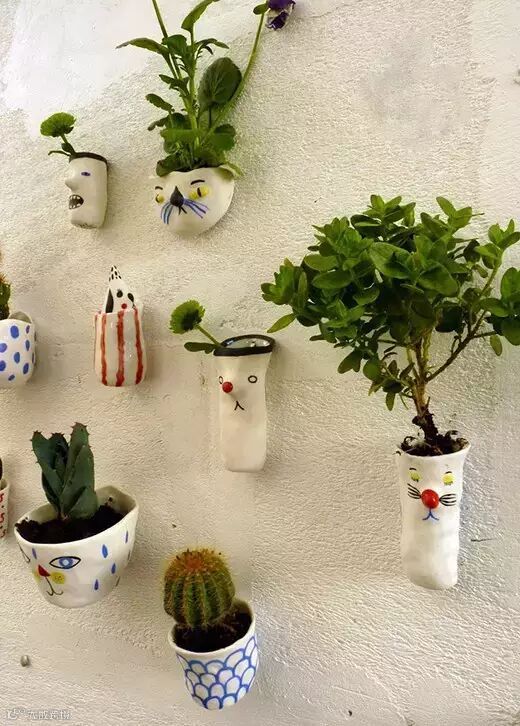10、形形色色的可爱花盆,为生活增添其乐融融的味道。