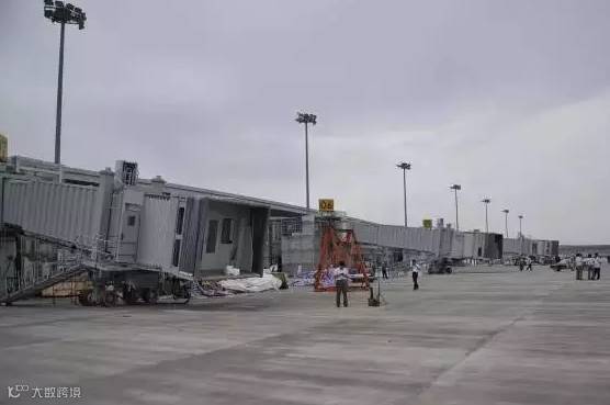 机场跑道道面已经贯通,廊桥正在紧张建设中,航站楼前的车辆行驶区域正在加紧施工,其它设备也正在安装。