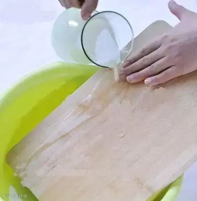 4.案板用久了,会产生一股腥臭味。可放入淘米水中浸泡一段时间,再用盐擦洗,腥臭味即可消除。