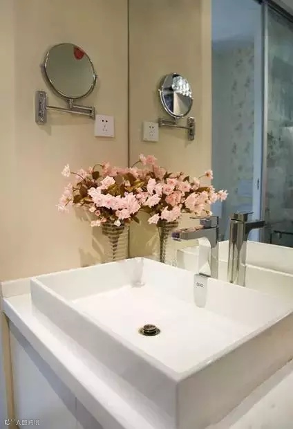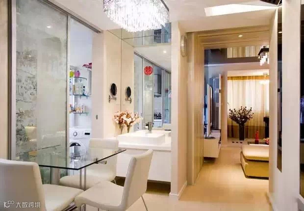 洗手台背景是整面镜子,镜子在小户型中可以增加视觉空间感