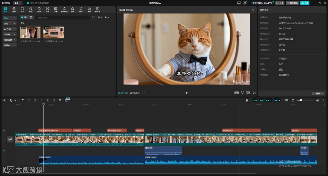 经剪辑处理,即可完成第一人称视角猫咪生活Vlog。
