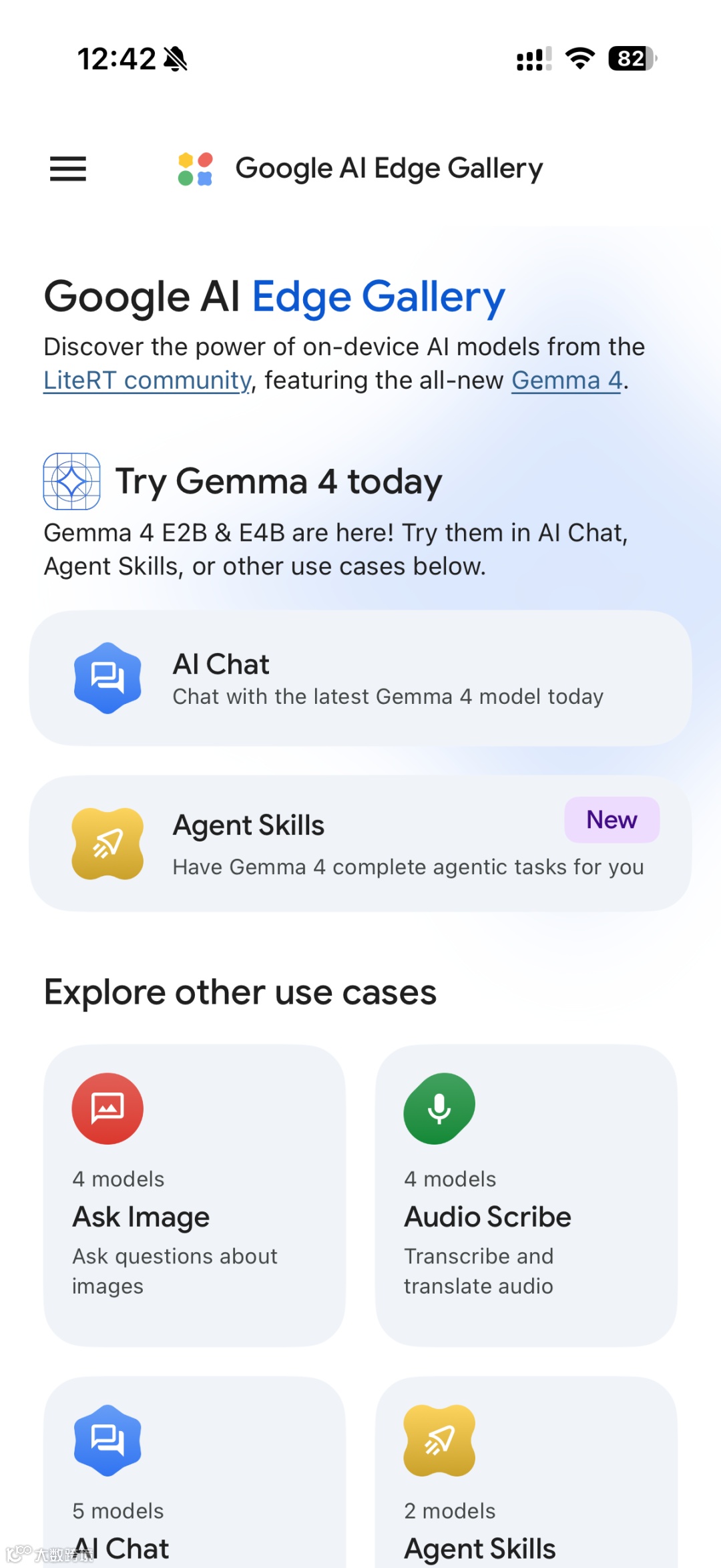 Google AI Edge Gallery是Google官方在App Store上线的应用,支持直接在iPhone端运行Gemma 4开源模型。