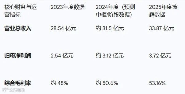 招股书显示,2025年公司总营收33.87亿元,毛利率53.16%。线下渠道贡献10.55亿元,占比33.3%,同比增长23.94%,增速显著高于线上的10.37%。