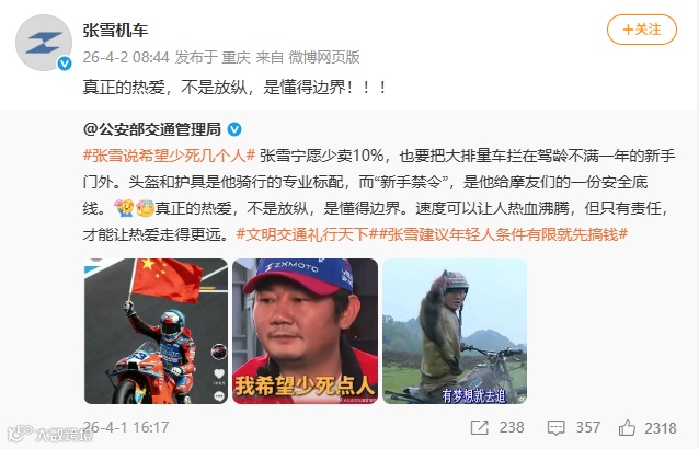 订单爆棚之际,张雪毅然禁止驾龄不足一年者购买夺冠车型820RR,为此甘愿损失10%销量。“动力过猛,新手难控”背后,是对用户的极致负责。反观跨境电商领域,虚假宣传、售后失联等短视行为频发,真正走得远的品牌始终恪守:极致交付创造用户信任。你愿意为用户承担多少,用户便回馈你多少——信任,方是永不枯竭的流量源泉。
