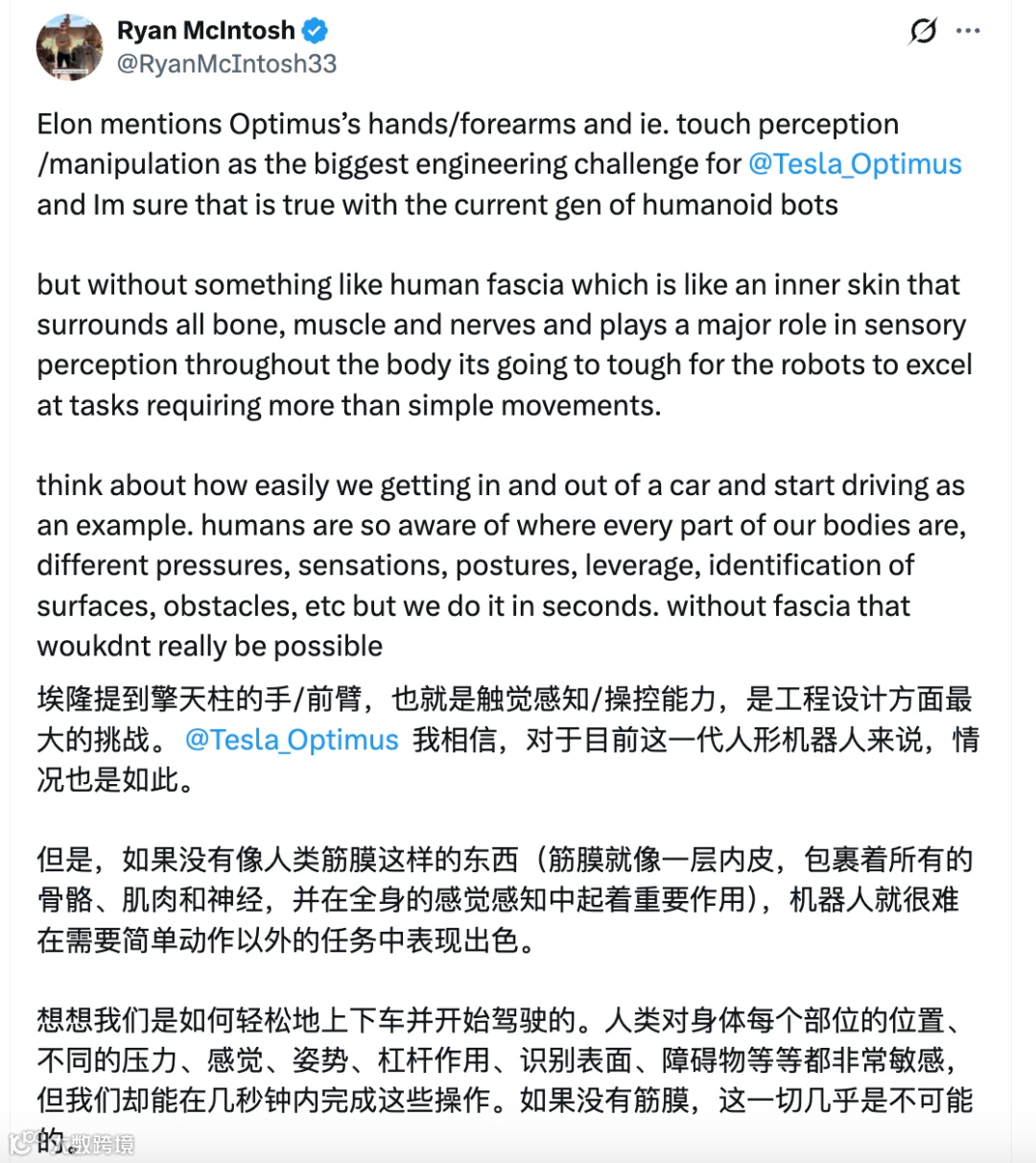 人类手部作为精密执行器与传感器,依赖毫秒级触觉反馈和动态力控制闭环。而马斯克指出,人形机器人开发中手部与前臂环节最具挑战性,恰是当前机器人技术的薄弱环节。