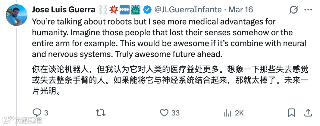 在医疗领域,此技术可辅助丧失神经感知者恢复触觉。