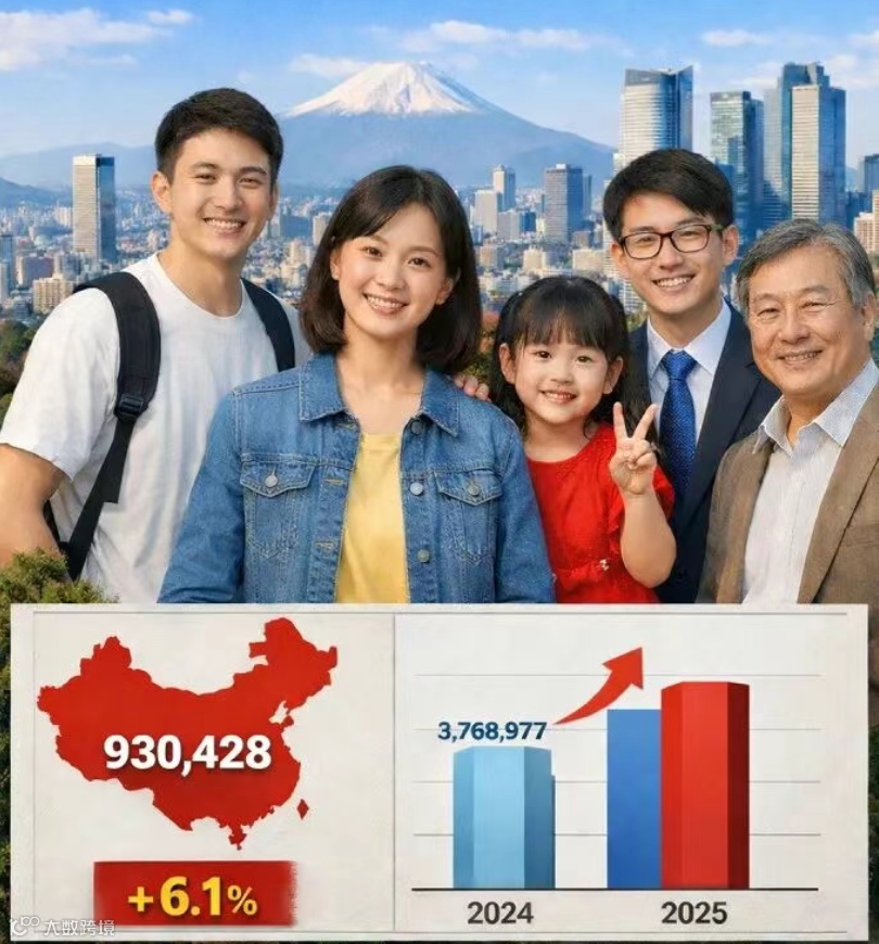 历史数据显示,在日中国人数量从1989年13.7万增至2007年60.6万,2008年超越韩朝群体居首位,2010年达68.7万人占总数三成以上。经历2011年震后波动及疫情影响,2024年登录人口87.3万人,2025年跃升至93.0万人,再创历史新高。