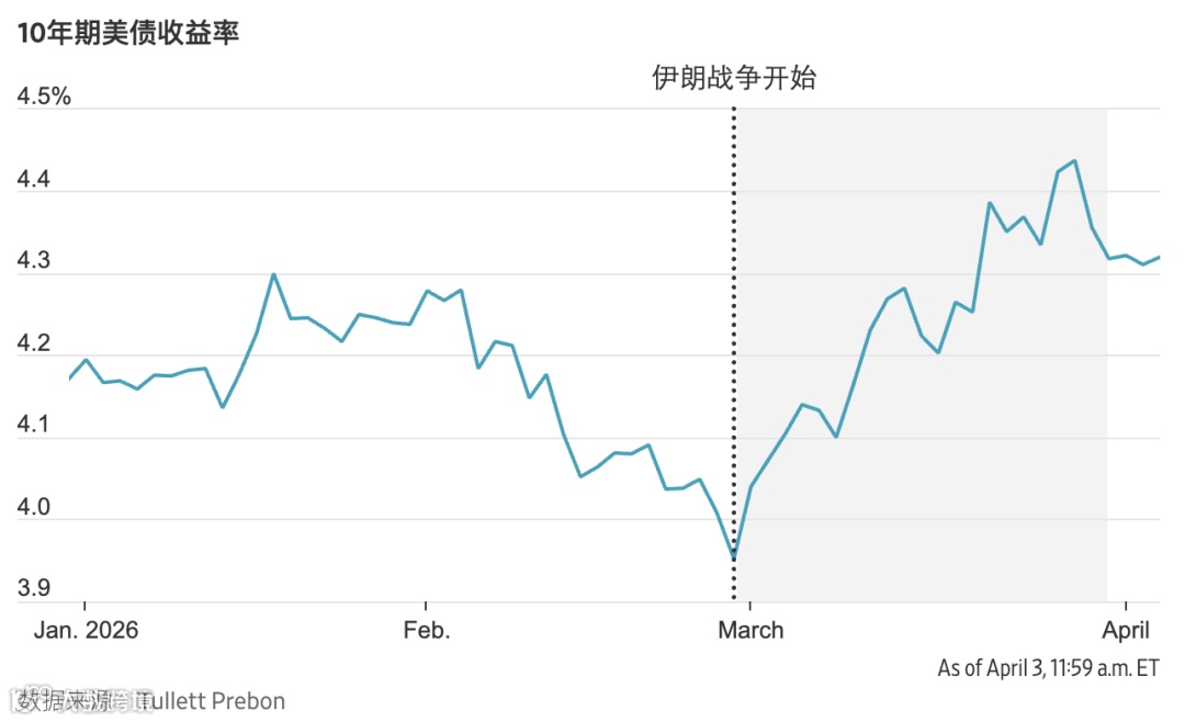 目前美国国债收益率的波动已经引起了关注。自美伊战争开始以来,10年期美债收益率已从不到4%攀升至4.32%左右。虽然目前利息成本消耗了近20%的收入,债务占经济的比重正接近纪录,但这更多是信心的博弈。