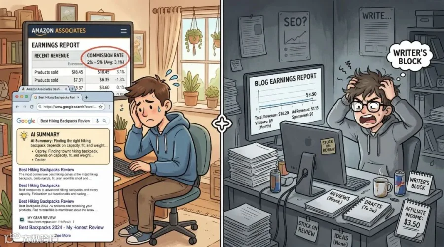 现在还有个更大的问题,谷歌搜索结果里的AI摘要占了最靠前的位置,用户要么得多划好几屏才能看到你的网站,要么你的内容得进AI摘要,还得用户再点一次才能跳转到你网站。比四五年前多了好几个步骤,流量获取难度翻了几倍。新手做亚马逊联盟,没个几年经验根本摸不透规则,想盈利不知道要等到什么时候。