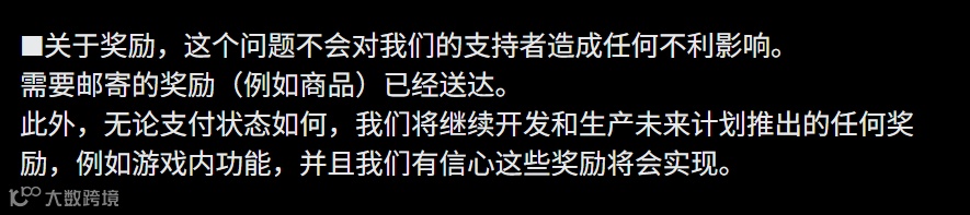 另外一个现实的问题是,即便平台方面出现问题,玩家的款项实际上早已支付给了平台,面对玩家的热情,项目方仍然选择了兑现众筹时制作实体周边的承诺。