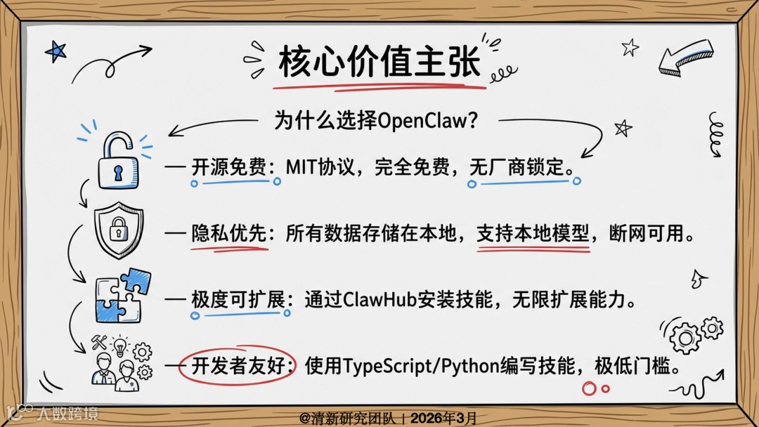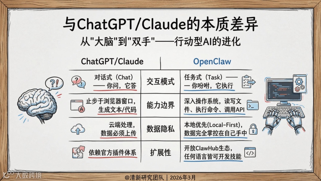 导读:OpenClaw 2.0 作为本地优先的行动型 AI 框架,已实现从聊天机器人到 “能动手” 的本质跨越,可读写文件、执行系统命令并集成多消息平台。其 ClawHub 技能市场已聚集 18142 个技