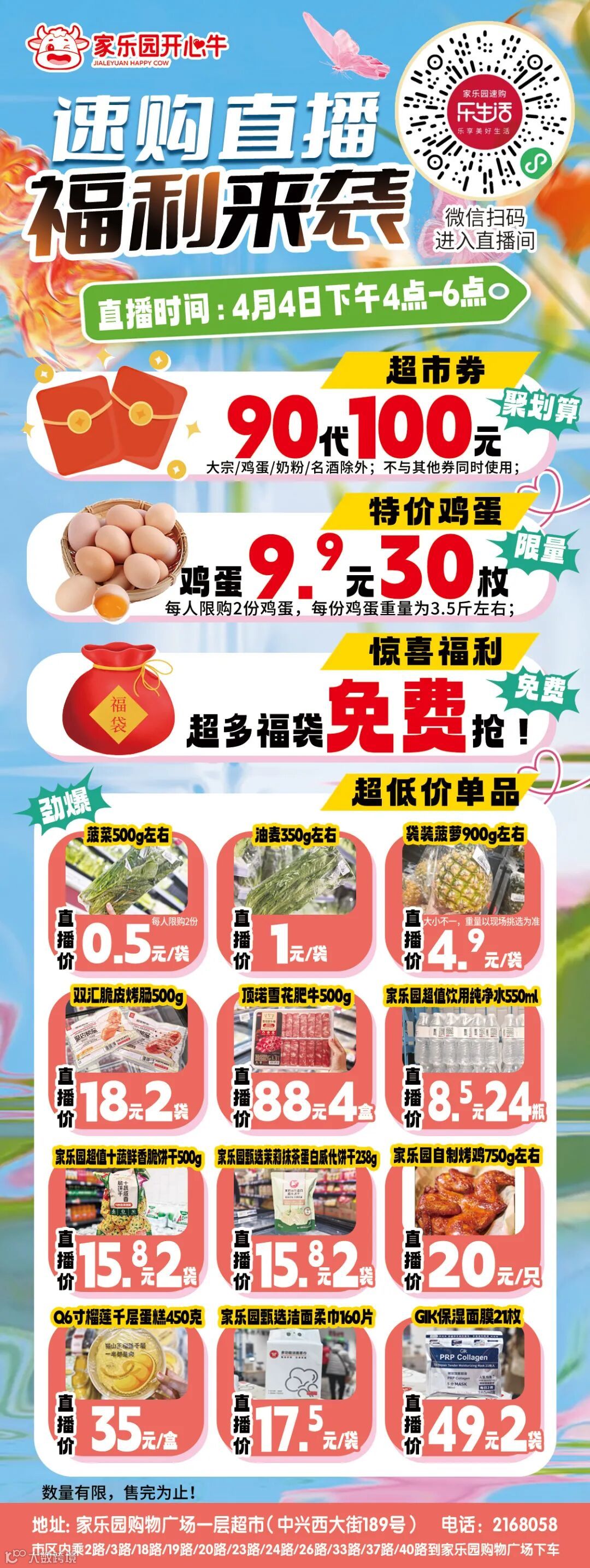 9.9元30枚鸡蛋,菠菜500g左右 0.5元!开心牛超市直播4月4日16:00准时开播!福利多多!