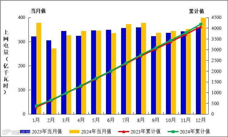 图3:2023年1月至2024年12月全国运行核电机组上网电量趋势