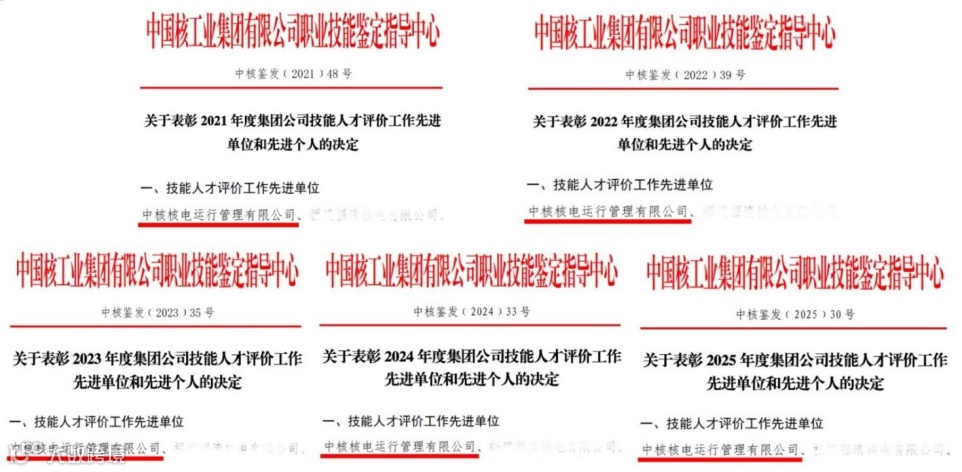 近日,秦山核电职业技能等级认定中心(以下简称“认定中心”)凭借在技能人才培养、评价体系建设、服务产业发展等方面的卓越表现,连续第五年荣获集团“技能人才评价工作先进单位”称号。这份沉甸甸的荣誉,既是中核集团对认定中心以匠心育人才、以技能强产业的褒奖鼓励,更是对秦山核电五年来在人才建设领域深耕细作、致力打造核电人才培养基地的高度认可。