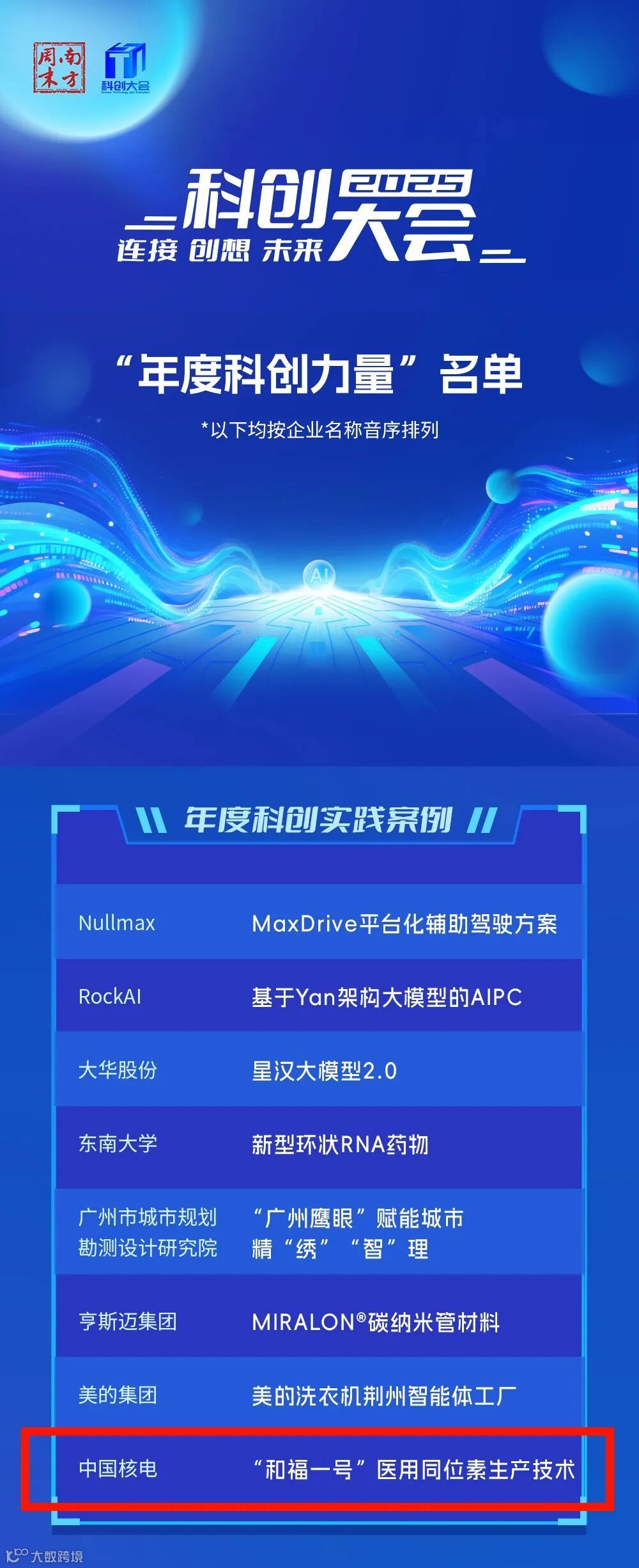 作为国内极具影响力的科创交流平台,南方周末科创大会已连续举办五届,旨在搭建创新思想、链接科技资源、推动成果转化的重要桥梁。本次大会不仅揭晓了“年度科创力人物”“年度影响力科创品牌”等多个权威榜单,还发布了《2025中国企业科创力研究报告》及“2025年企业科创力100强”名单,全面展现中国科创发展脉络与强劲动能。秦山核电“和福一号”医用同位素生产技术成功入选“年度科创实践案例”,与Nullmax MaxDrive平台化辅助驾驶方案、大华股份星汉大模型2.0等前沿成果同台获评,既是行业对中国核电科技创新实力的高度认可,更是对核电技术跨界服务民生价值的充分肯定。