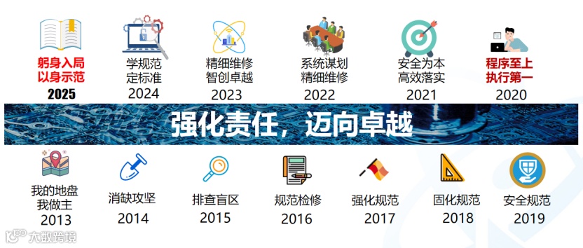 核安全文化必须融入管理体系,不能仅依赖个人自觉。部门通过建立全员核安全责任清单、完善标准化流程、运用数字化工具等方式,推动核安全要求扎实落地。自2013年起,维修四处围绕管理提升,每年选定主题系统推进,覆盖技能、文件、行为、流程等多方面,以体系化、常态化的运作机制,保障核安全主体责任层层落实、持续巩固。