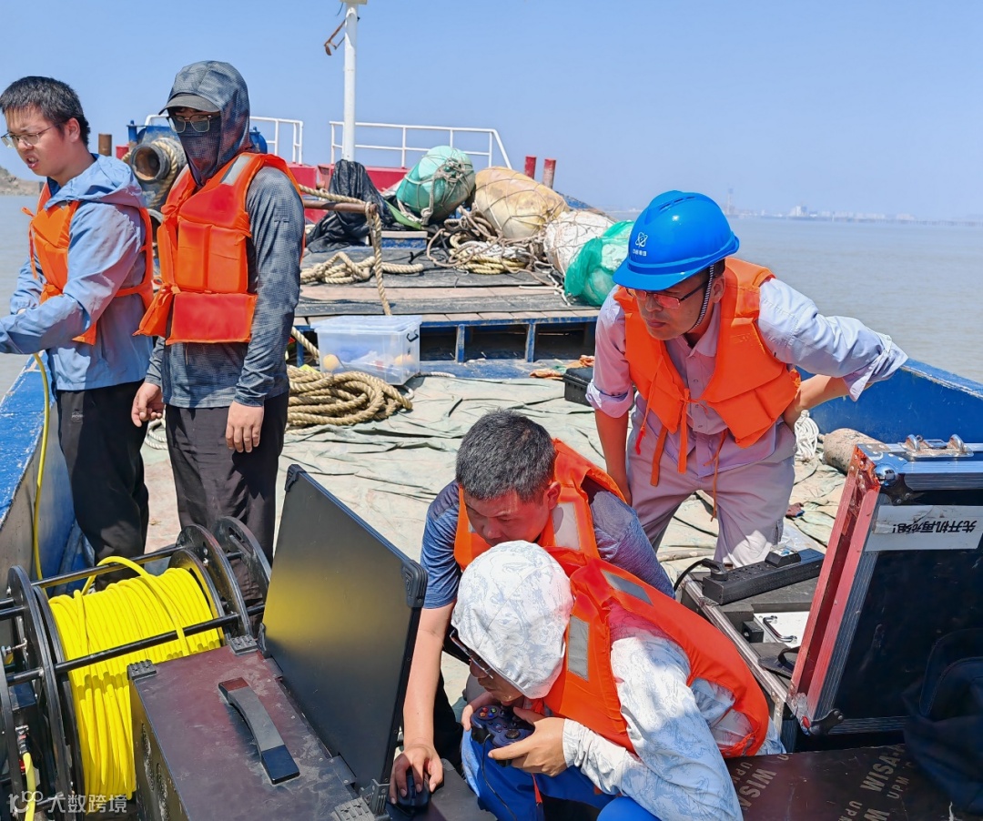 技术处材料役检科边春华等正在海面上执行取水口拦污栅检查工作。
